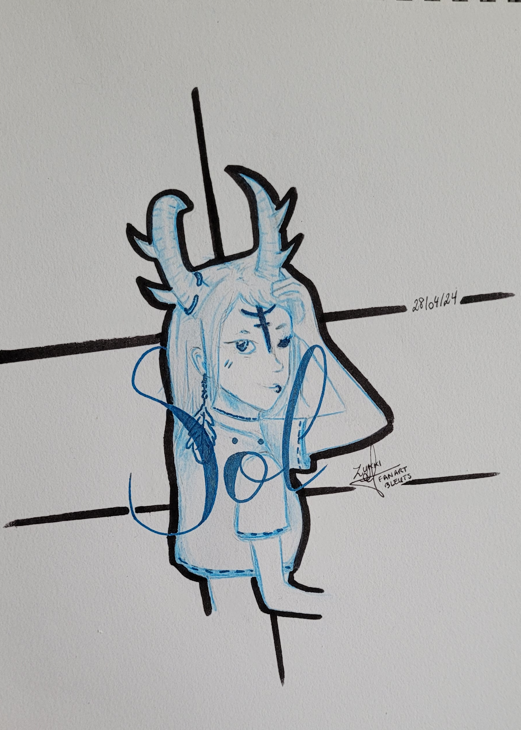 Ce bleu lui va si bien ! J'aime beaucoup le résultat, on reconnaît l'univers de Bleuts mais dans ton style, ça rend super bien !